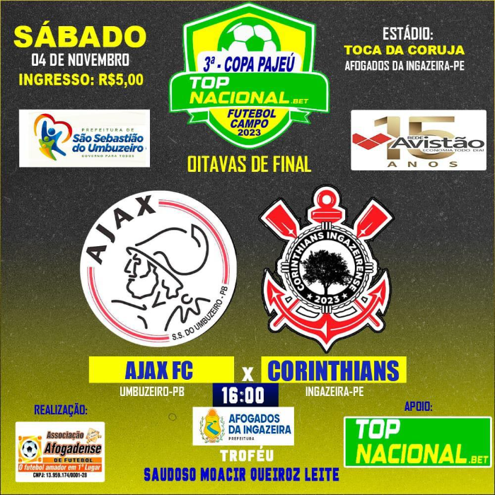Buscando a tão sonhada classificação para as quartas de final da 3ª Copa Pajeú de Futebol Amador, a equipe do Ajax da cidade de São Sebastião do Umbuzeiro terá um duelo bastante competitivo neste sábado(04), pelas oitavas de final da competição interestadual.